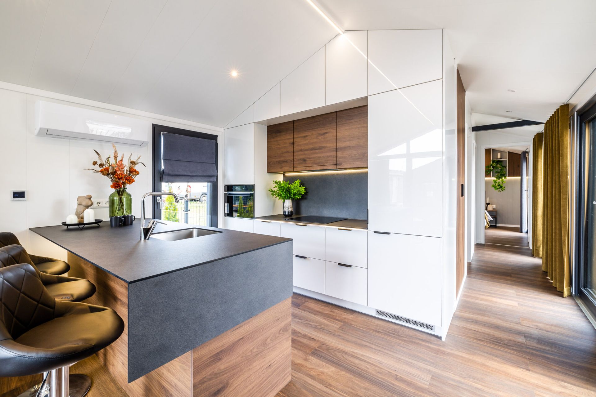 Sumar húsin eru 57 fermetrar. 100% klassi. Hiti í gólfum, koma með þvottavél og uppþvottavél, með eldavél, sjónvarpi. Koma eins og þessar myndir sýna.